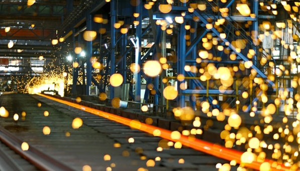 武鋼搶抓國內(nèi)高鐵新一輪大發(fā)展的市場機(jī)遇,開足馬力組織生產(chǎn)。10月11日,記者在武鋼條材總廠大型分廠軌梁生產(chǎn)線獲悉,截至9月該廠生產(chǎn)百米重軌46.17萬噸,實現(xiàn)盈利1.3億元 ,超計劃完成全年目標(biāo),目前正向月產(chǎn)重軌7.4萬噸沖刺。圖為10月11日該廠的百米重軌生產(chǎn)現(xiàn)場。(作者:朱旺春 單位:武鋼)
